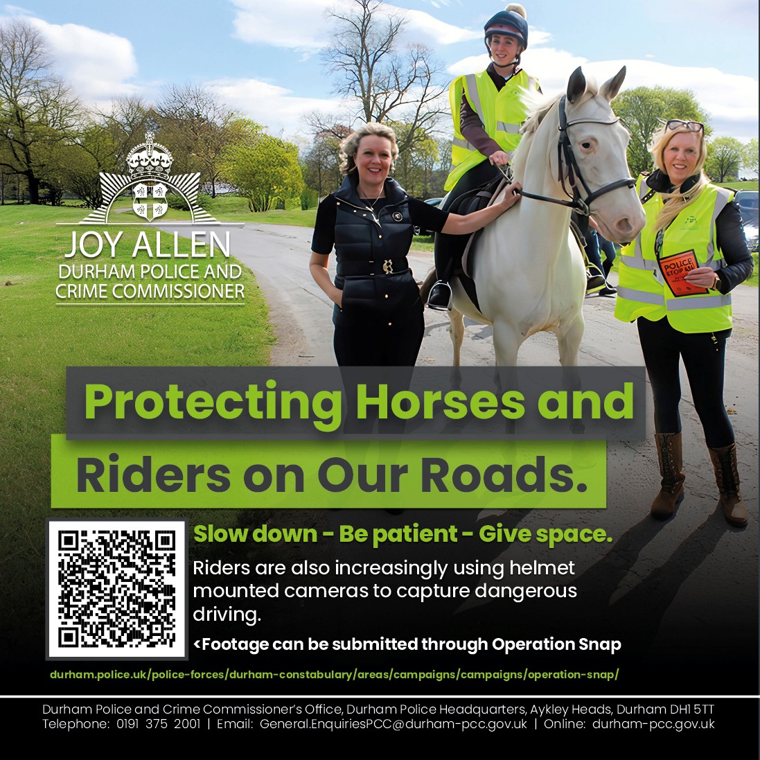 As Police and Crime Commissioner for Durham and Darlington, and nationally as Joint Lead for Roads Policing with the Association of Police and Crime Commissioners, I will continue working with partners such as the British Horse Society to raise awareness and improve road safety.
